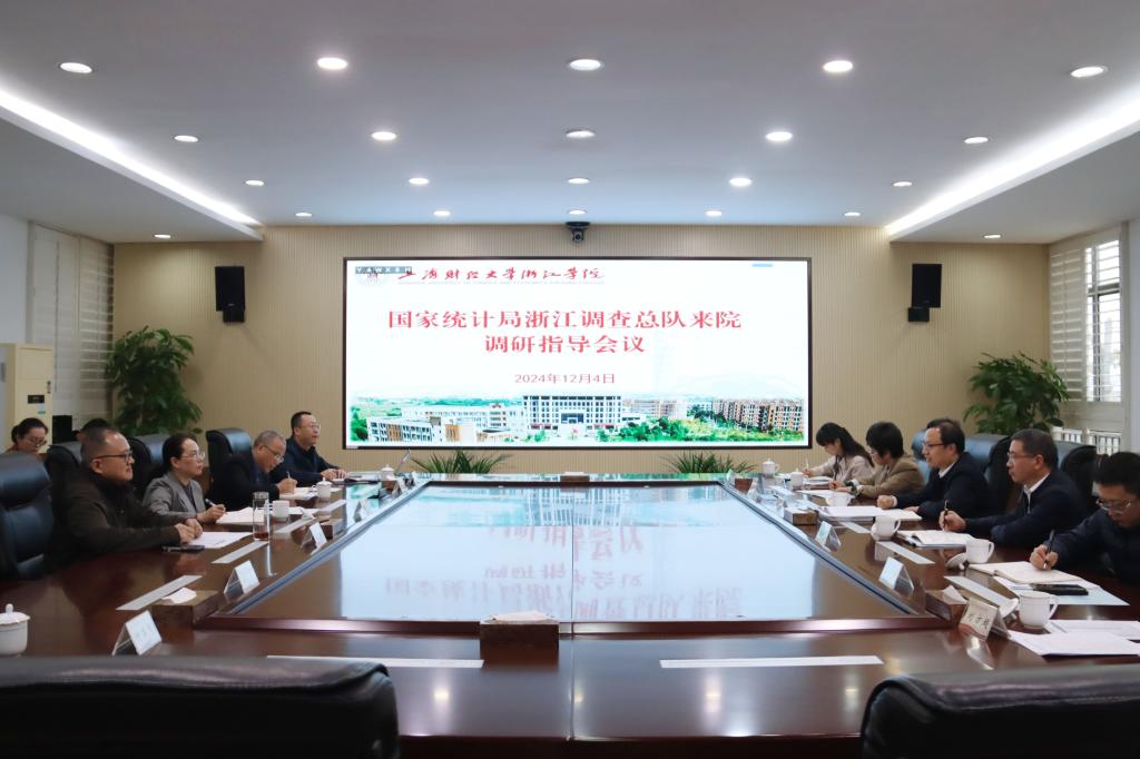 为深入贯彻党的二十届三中全会精神,深化政校合作,推动“政产学研用”深度融合,发挥部门实务优势和高校专业资源,提升统计调查服务经济社会高质量发展的能力,12月4日,国家统计局浙江调查总队党组书记、总队长张斌一行来院调研指导统计实务大模型建设情况。金华市委常委、常务副市长张新宇,市政协党组成员、副主席蔡艳,国家统计局金华调查队党组书记、队长陈彤等陪同调研。院长马洪,副院长邱风,统计系相关负责人等参与调研,会议由马洪主持。