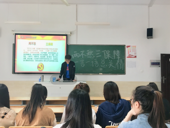 4月25日中午12:30,统计系学生党支部在教学楼7幢406教室开展了以“两不愁三保障,一言一语总关情”为主题的统学说活动,此次会议的主讲人为统计系学生党支部预备党员余越。